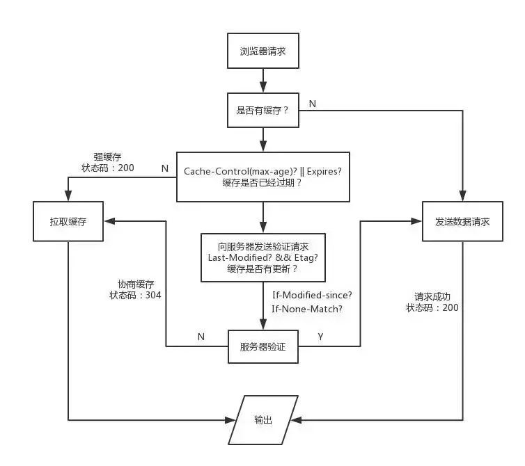 因为网上的图片太笼统了,而且我翻过很多讲缓存的文章,很少有将状态码还有什么时候将缓存存放在内存(memory)中什么时候缓存在硬盘中(disk)系统地整理出来,所以我自己绘制了一张浏览器缓存机制流程图,结合这张图再更深入地说明浏览器的缓存机制。