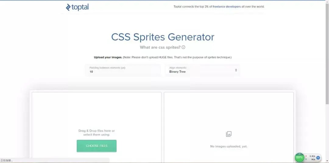 雪碧图的概念大家一定在生活中经常听见,其实雪碧图是减小请求数的显著运用。而且很奇妙的是,多张图片聘在一块后,总体积会比之前所有图片的体积之和小(你可以亲自试试)。这里给大家推荐一个自动化生成雪碧图的工具:https://www.toptal.com/developers/css/sprite-generator(图片来自官网首页)