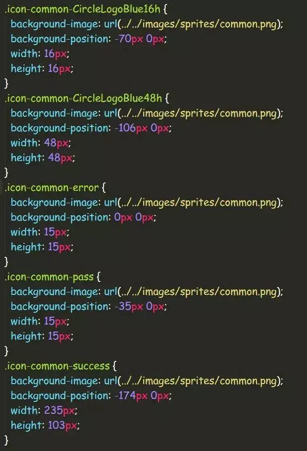 我们可以看到,所有我们之前放在 common 文件夹里的图片资源都自动地生成了相应的样式,这些都不需要我们手动处理,webpack-spritesmith这款插件就已经帮我们完成了!