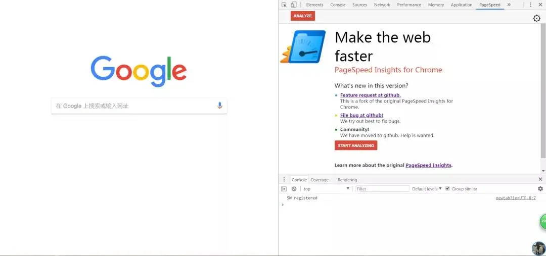 除了 network 版块,其实 chrome 还为我们准备好了一款监测网络传输性能的插件——Page Speed,咱们的文章封面,就是用的 Page Speed 的官方宣传图(因为我觉得这张图再合适不过了)。我们只需要通过下面步骤安装,就可以在 chrome devtools 里找到它了:chrome 菜单→更多工具→拓展程序→chrome 网上应用商店→搜索 pagespeed 后安转即可。
