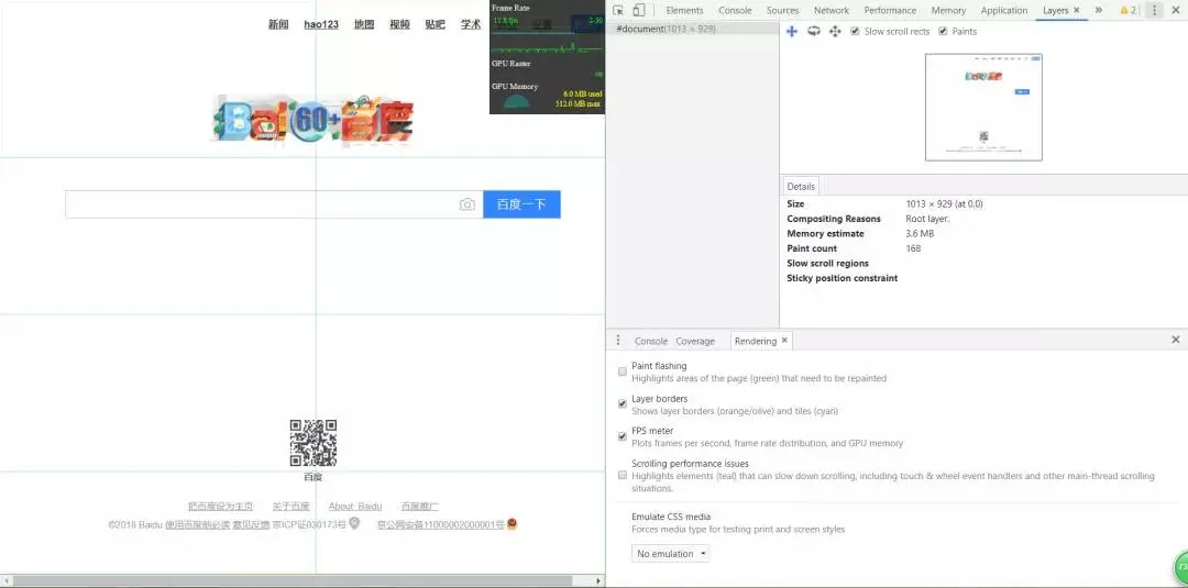 (一)最先是页面右上方的小黑窗:其实提示已经说的很清楚了,它显示的就是我们的 GPU 占用率,能够让我们清楚地知道页面是否发生了大量的重绘。