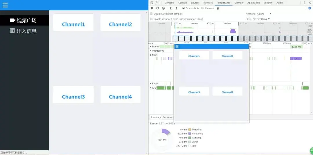 我们习惯使用 chrome devtools 中的 performance 版块来测量页面重排重绘所占据的时间: