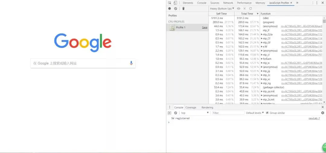 在编程的过程中,如果我们使用了闭包后未将相关资源加以释放,或者引用了外链后未将其置空(比如给某 DOM 元素绑定了事件回调,后来却 remove 了该元素),都会造成内存泄漏的情况发生,进而大量占用用户的 CPU,造成卡顿或死机。我们可以使用 chrome 提供的 JavaScript Profile 版块,开启方式同 Layers 等版块,这里我就不再多说了,直接上效果图: