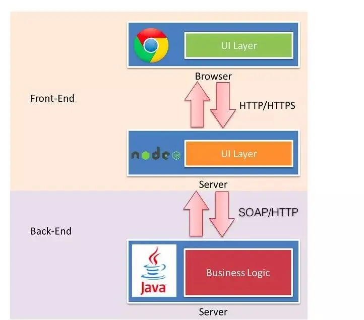 其实现在的企业级网站,都会搭建一层 node 作为中间层。大概的网站框架如图所示: