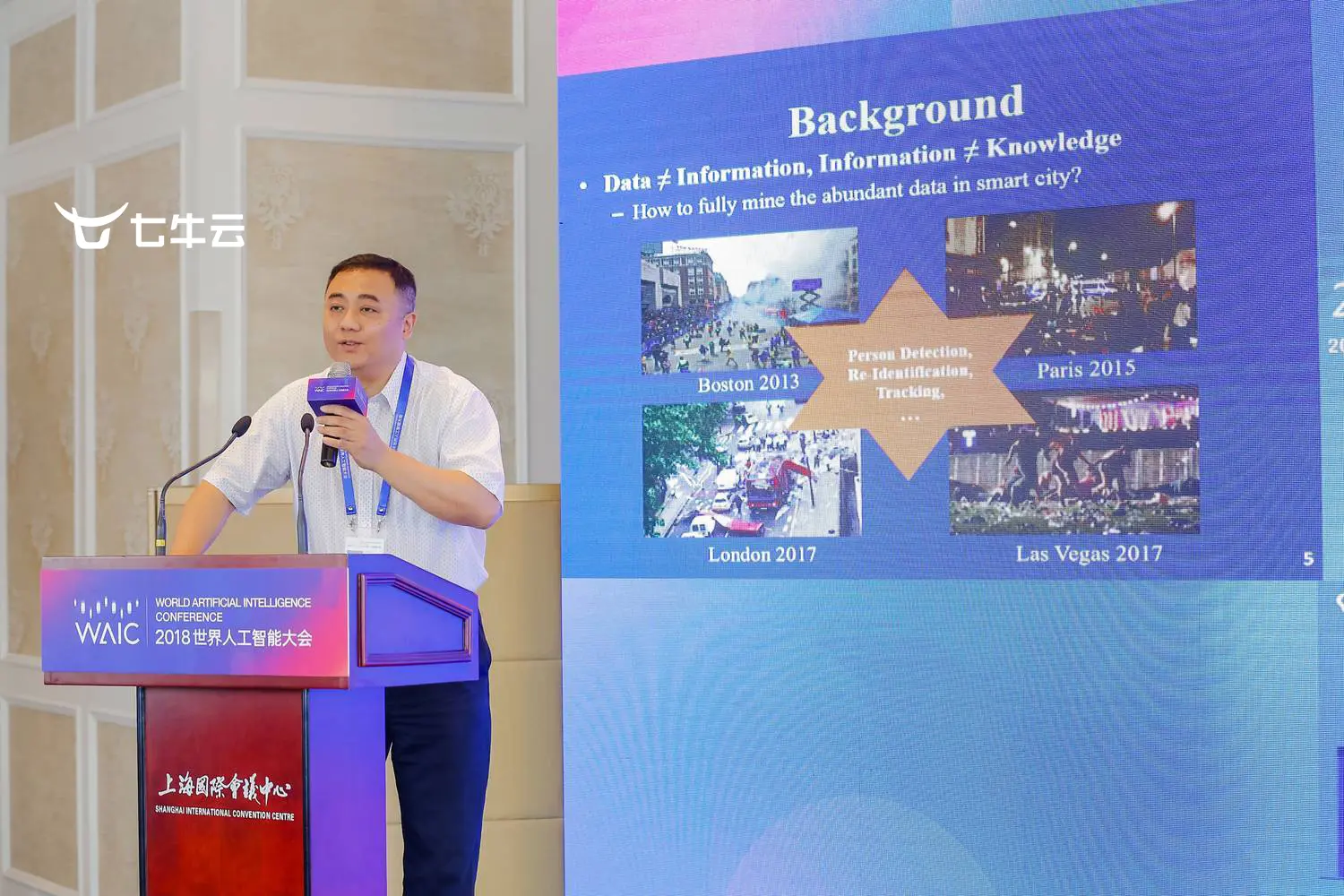 2018 年 9 月 18 日,2018 世界人工智能大会·视觉智能 瞳鉴未来七牛云专场分论坛在上海国际会议中心 5 楼欧洲厅举行。华为诺亚方舟实验室计算视觉首席科学家、美国德克萨斯大学圣安东尼奥分校计算机系教授田奇,在会上为大家带来了题为《行人再识别的挑战和最新进展》的分享。