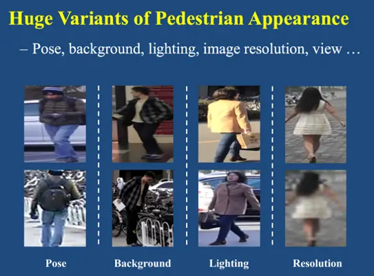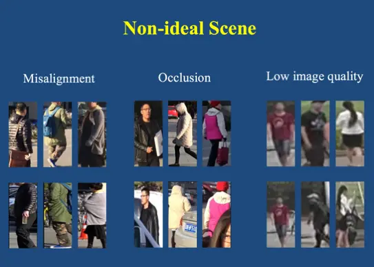行人再识别是一个较难的课题,解决这一课题面临着诸多挑战。这些挑战可以归纳为三种:第一个挑战是对大量训练数据的需求;第二个挑战是行人视觉表观差异性大;第三个挑战是非理想的场景。