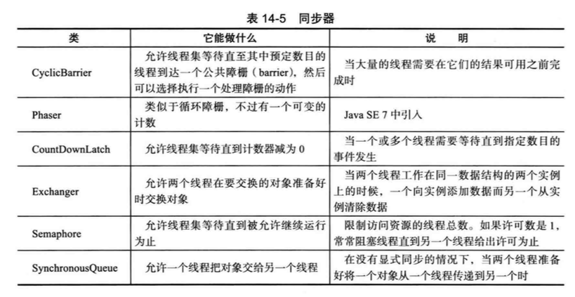 - SynchronousQueue:不存储元素的阻塞队列。