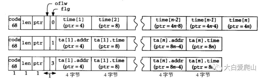 有三种时间戳类型,Net/3通过如图20所示的ip_timestamp结构访问。