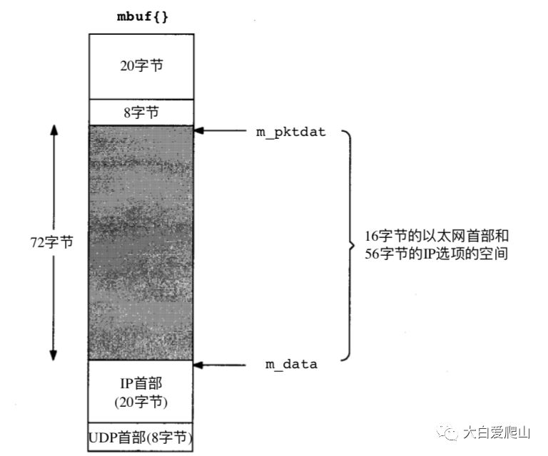 对于UDP,它使用M_PREPEND把UDP和IP首部放置到缓存的最后,与数据分离,如图29所示。因为首部是放在缓存的最后,所以在缓存中总是有空间存放选项,对UDP来说,第367行的条件总为假。