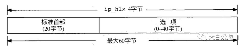 IP分组内可以包含某些在分组被转发或者被接收之前处理的可选字段。IP实现可以按任意顺序处理选项;图1显示了标准IP首部之后最多可跟40字节的选项。