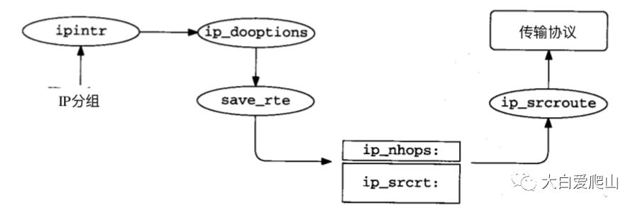 save_rte把该选项复制到ip_srcrt,计算保存ip_nhops中源路由的跳数,把返回路由的目的地保存在dst中。