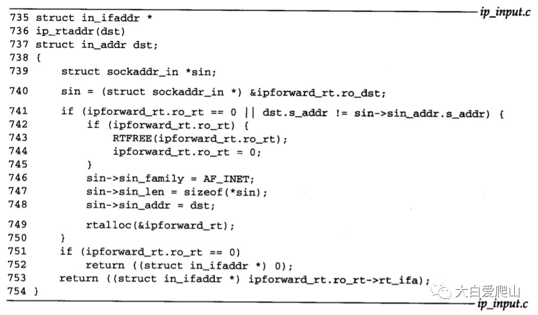 751~754 如果没有路由可用,就返回一个空指针;否则,就返回一个指针,它指向与所选路由相关联的接口地址结构。