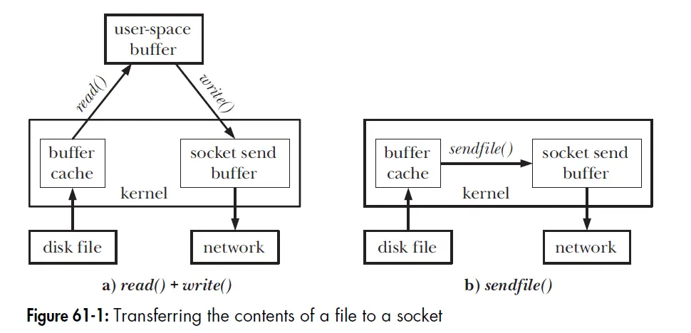 sendfile()的优化 (例如http请求,首部信息胡通过write,页面数据可以sendfile,导致TCP传输2个报文,网络带宽利用率低)