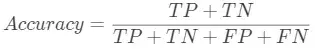 在二分类中,准确率可以通过下面的计算公式得到。