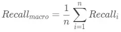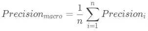 第一种办法就是先在各个混淆矩阵中分别计算出结果,再计算平均值,这种方式称为“宏平均”。