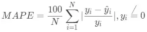 平均绝对百分误差(Mean Absolute Percentage Error,MAPE)公式为: