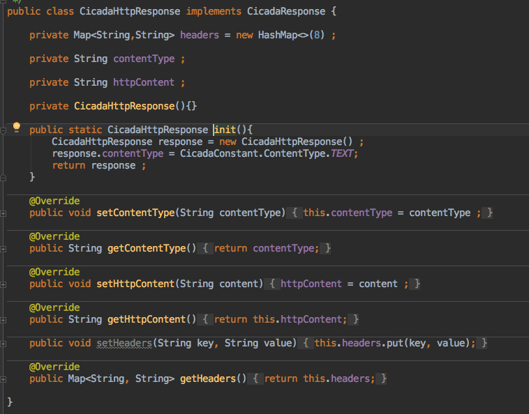 成员变量是两个接口 CicadaRequest、CicadaResponse,名称就能看出肯定是存放请求和响应数据的。