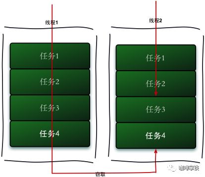 我们上面用CompletableFuture完成了我们对多组任务并行执行,但是其依然是依赖我们的线程池,在我们的线程池中使用的是阻塞队列,也就是当我们某个线程执行完任务的时候需要通过这个阻塞队列进行,那么肯定会发生竞争,所以在JDK1.7中提供了ForkJoinTask和ForkJoinPool。