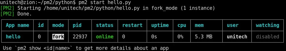 现在,已经成功安装好 PM2 了,让我们启动一个 Python 应用吧。