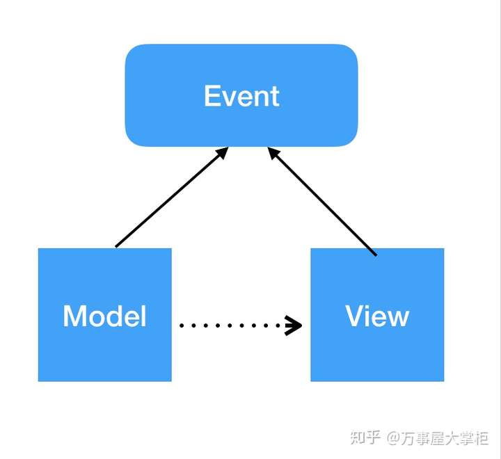 三者关系如上。Model和View分别继承Event. Model和View通过组合的方式关联在一起。