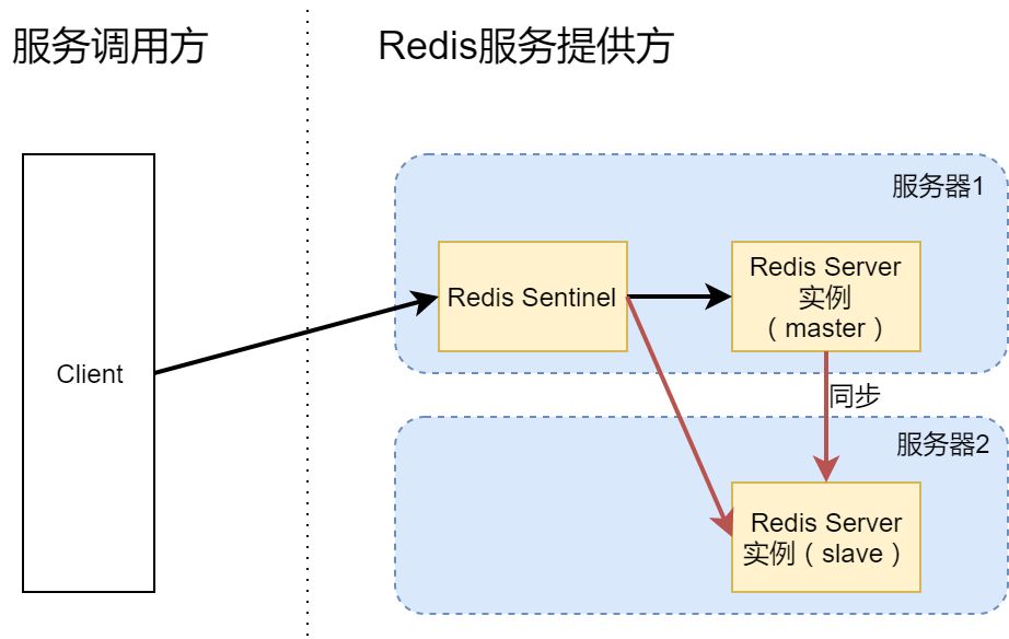 对于Redis服务的调用方来说,现在要连接的是Redis Sentinel服务,而不是Redis Server了。常见的调用过程是,client先连接Redis Sentinel并询问目前Redis Server中哪个服务是master,哪些是slave,然后再去连接相应的Redis Server进行操作。