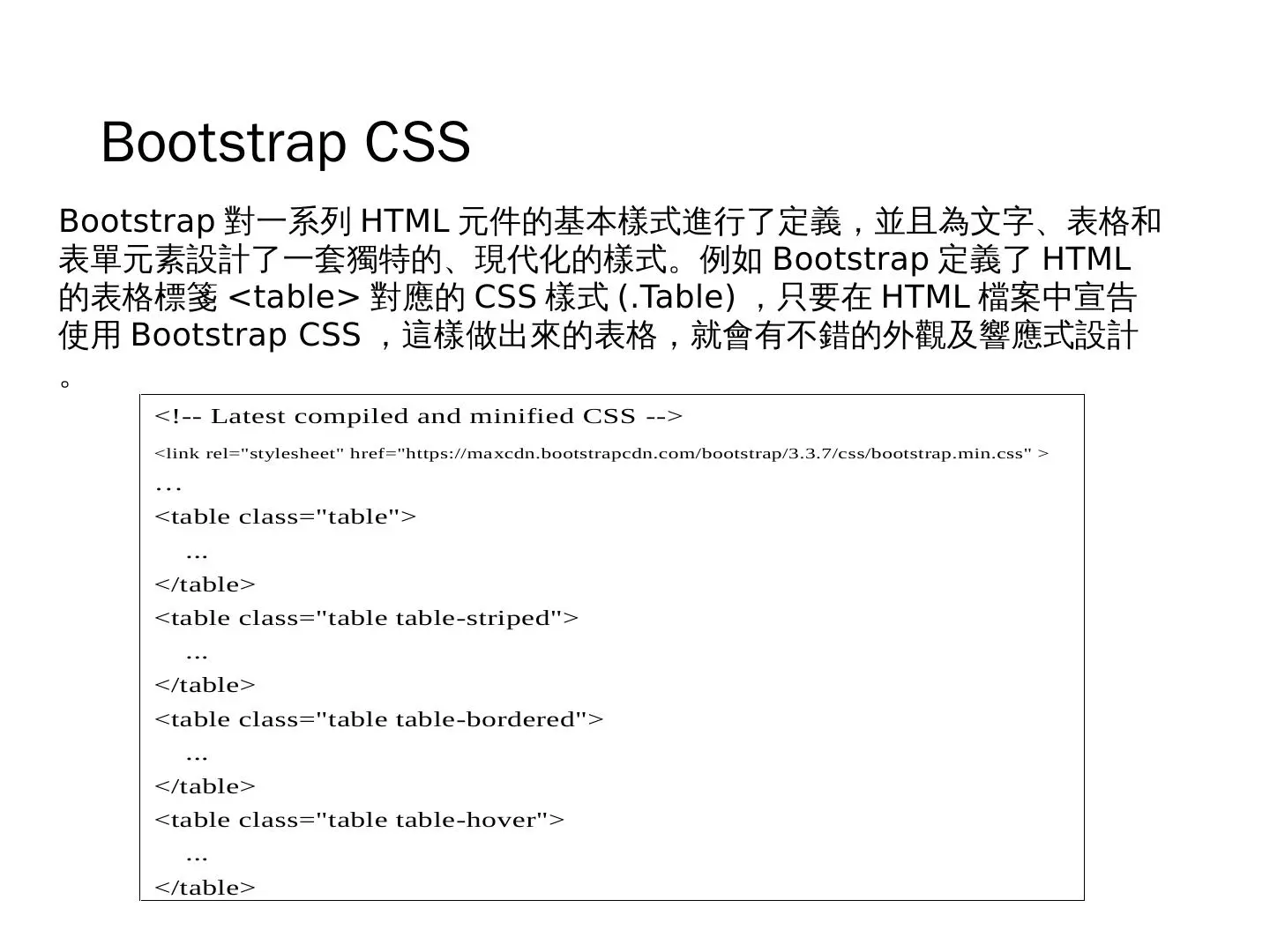 如何利用Boostrap做响应式设计的前端方案? 示说网 2018-10-09 142 阅读1分钟 Boostrap提供了一系列的前端css和各种小物件支持,让前端设计变得轻松可以很容易支持多屏。 资源下载www.slidestalk.com/s/css_respo…