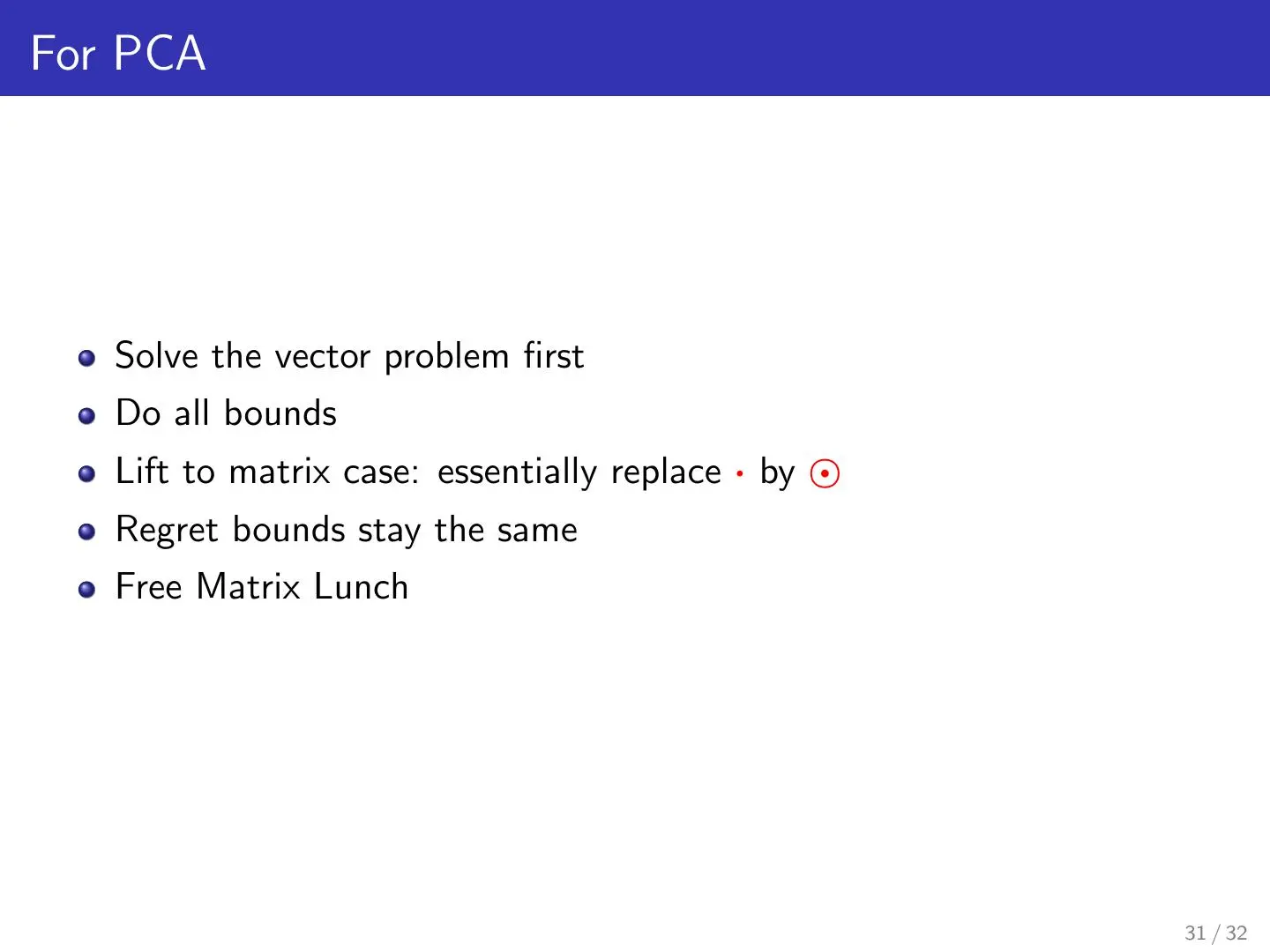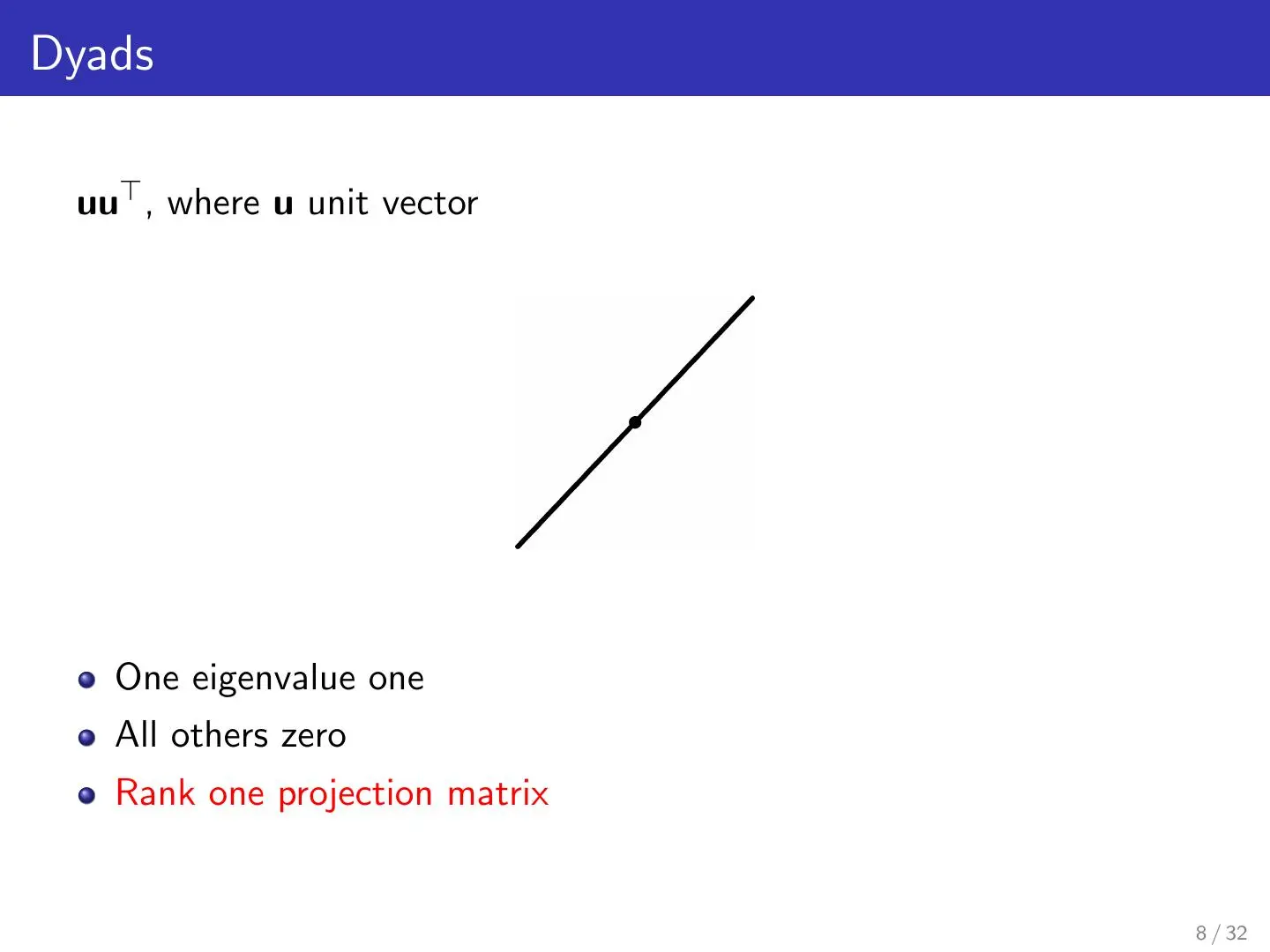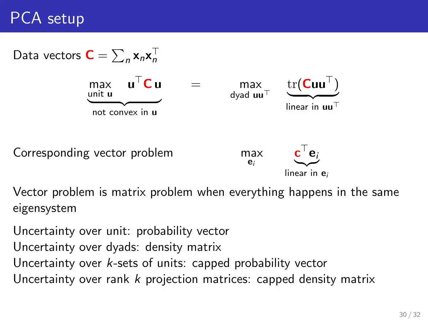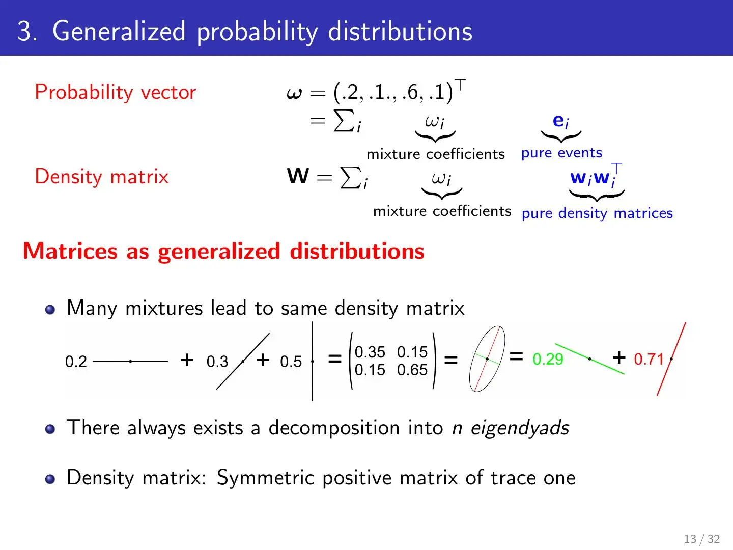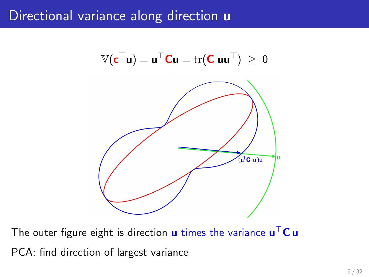 本章属于总结章节,从矩阵的基础知识讲起,介绍了协方差、椭圆对称矩阵、Dyads、Directional variance(方向差)等知识并从而扩展到了概率论知识例如贝叶斯公式,Bayes Rule for density matrices等,并用简洁有力的语言总结了主成分分析的执行思想。