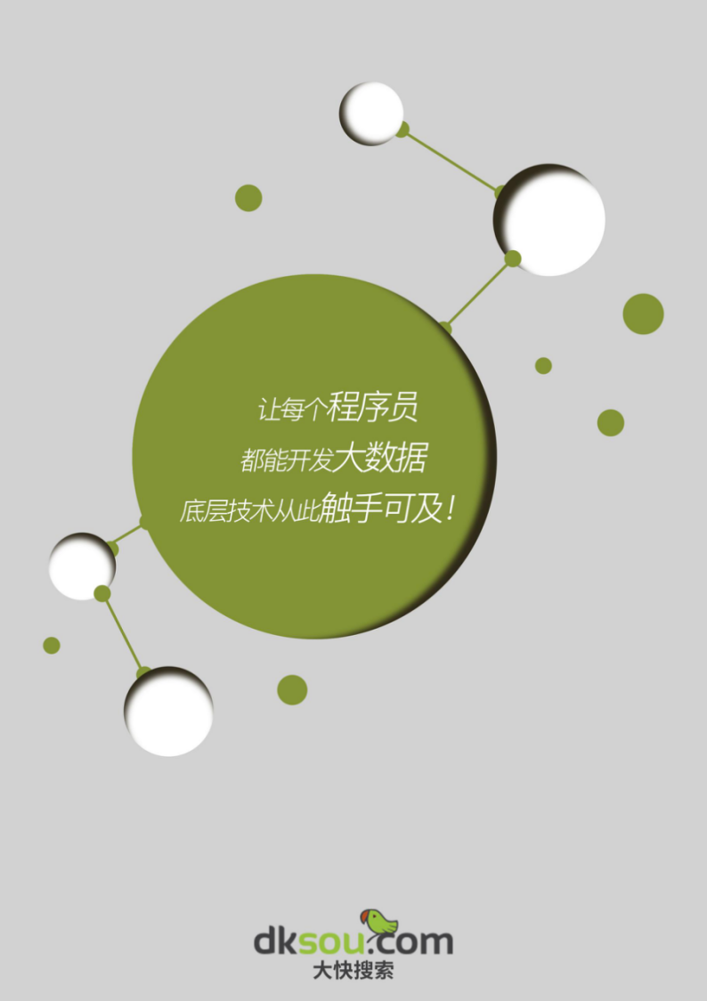 当前国内的hadoop大数据处理平台可以说是比较杂乱的,有国外的、有在国外版本基础上二次开发,却很少有做原生态开发的。而至于做原生态开发的,目前已知也就是大快搜索了。所以,个人一直很喜欢大快搜索产品手册封面上的一句话:让每个程序员都能开发大数据 底层技术从此触手可及!在这里我也是直接把大快搜索的手册封面图拿来了做了文章的封面。