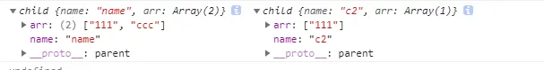 console.log(c1,c2);//child {name: "name", arr: Array(2)} child {name: "c2", arr: Array(1)}