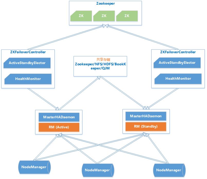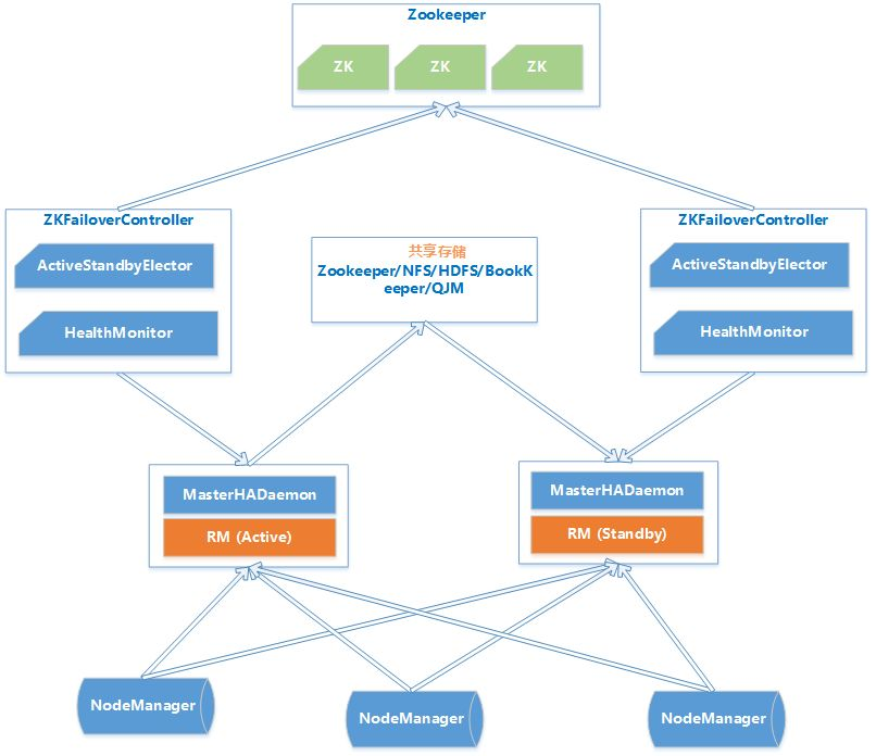Zookeeper:核心功能是维护一把全局锁控制整个集群上只有一个Active的ResourceManager。