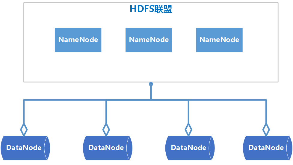 HDFS Federation是可以在Hadoop集群中设置多个NameNode,不同于HA中多个NameNode是完全一样的,是多个备份,Federation中的多个NameNode是不同的,可以理解为将一个NameNode切分为了多个NameNode,每一个NameNode只负责管理一部分数据。