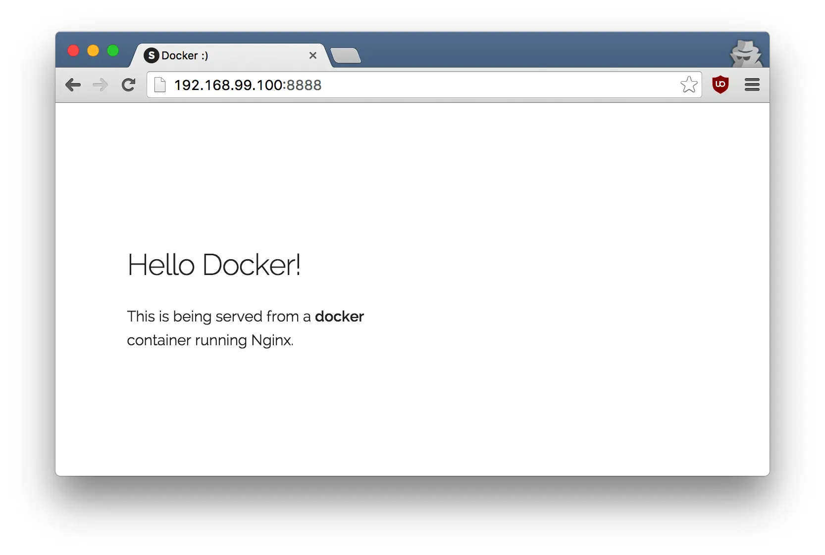 我们在容器内部使用5000端口,并把它暴露在外部的8888端口上,访问URL的8888端口,你的应用就会像下面这样。