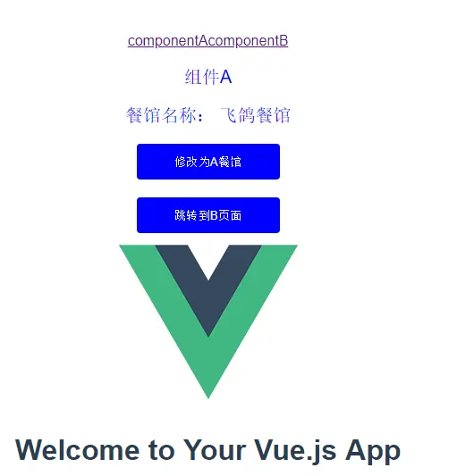 点击修改为A餐馆就修改为A餐馆那样子,componentB组件同样如此,