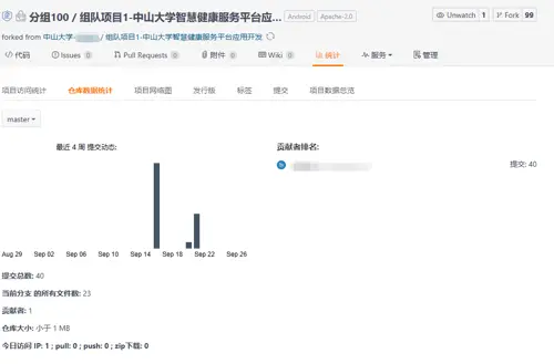 图5:教师可在码云上查看每个小组项目中各成员的贡献,并以此为评分参考