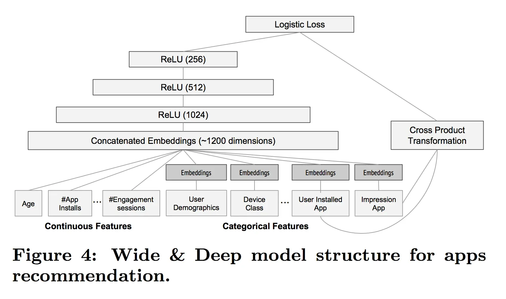 Wide & Deep Learning for Recommender Systems是Google在2016年发表的文章。这篇文章一共只有4页,非常非常短,但是其内容产生了巨大的影响。文章大意如下: