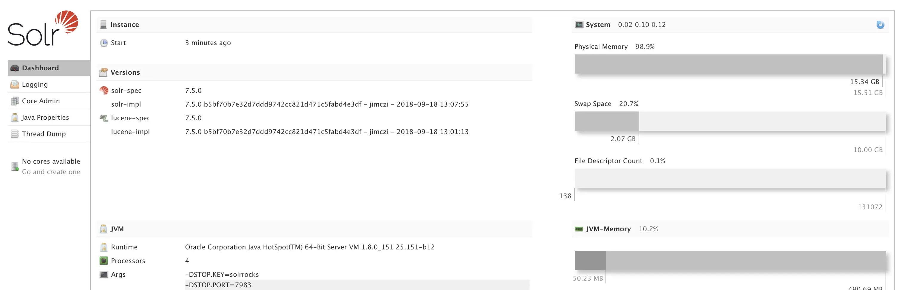 cd solr-7.5.0/bin/ 尝试使用命令启动./solr start 会发现启动失败