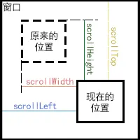 scrollTop:获取窗口上边界和对象在窗口中可见内容的最顶端之间的距离 offsetWidth:对象在窗口中可见区域的宽度(包括边线)(offsetWidth = width + border + padding)