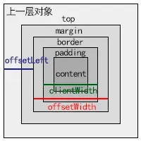 offsetLeft:获取对象的外边框和它上层对象的内边框之间的距离 (offsetLeft = left + marginLeft)