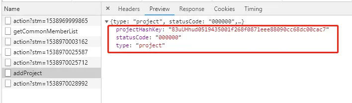 返回内容: {"type":"project","statusCode":"000000","projectHashKey":"Nr2PNlf82c6a7995d30286e041944fd40e4c01d58b3edeb"}