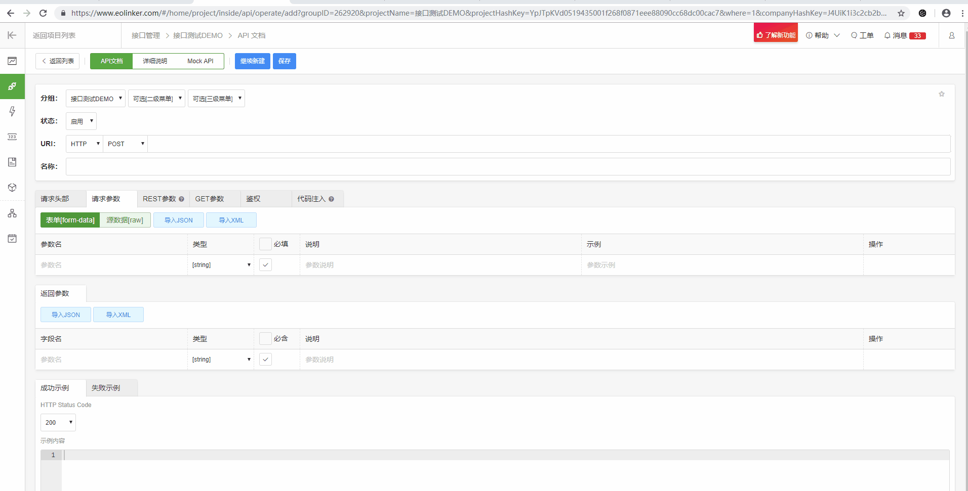 拿eolinker的一个“添加接口项目接口”测试为例,做以下工作: