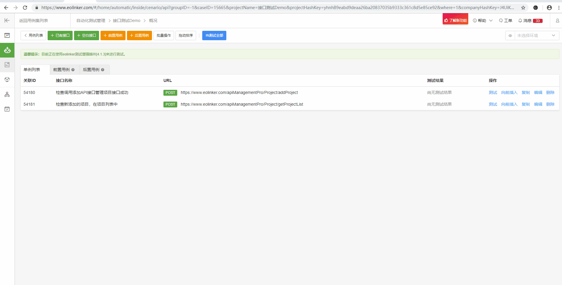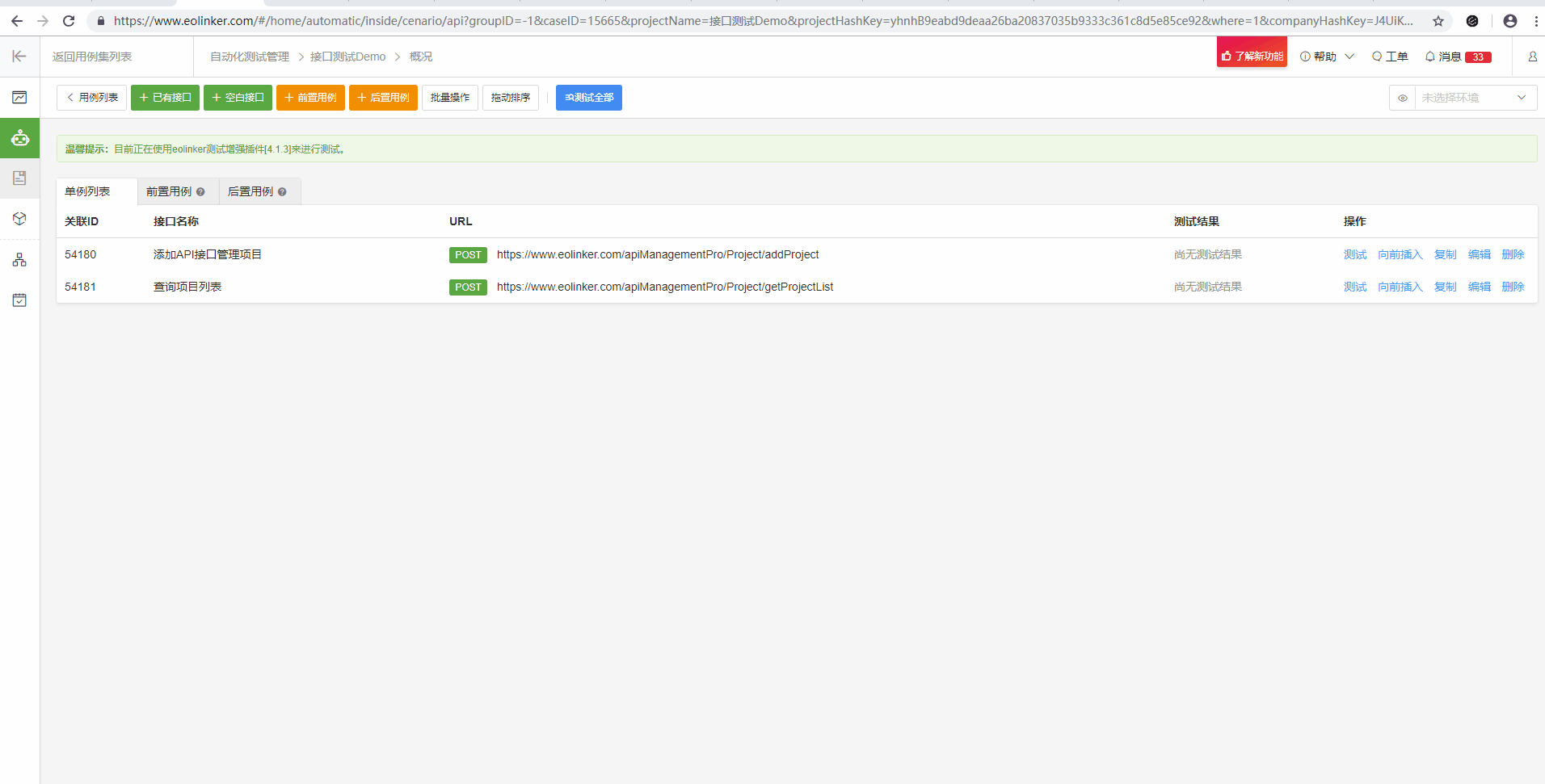 1、开发的API文档编写和测试的接口测试脚本编写,可以都在eolinker上进行,所以写测试脚本时,可以直接从eolinker的API文档功能模块中,导入API接口,写测试脚本只需添加断言,和要传的参数即可。