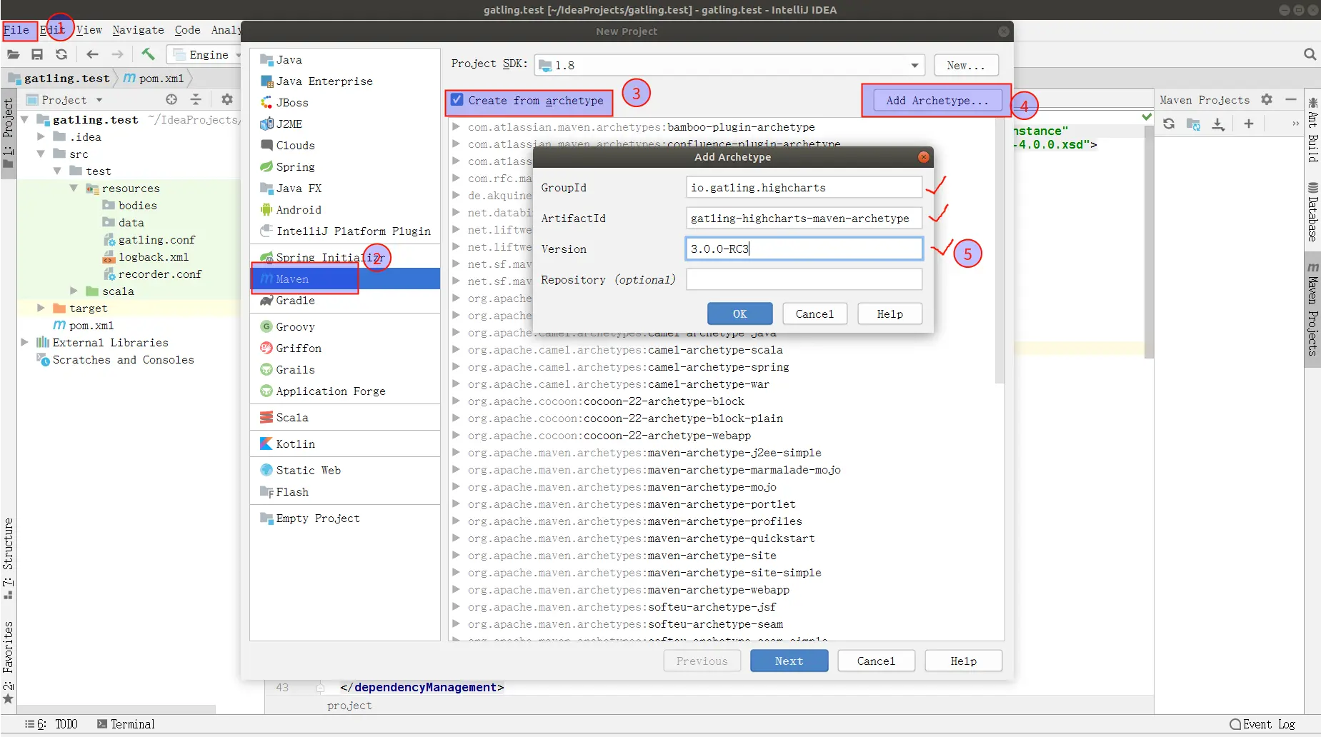 创建Gatling提供的gatling-highcharts-maven-archetype,