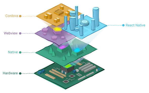 React Native 代表的是移动端框架的第三阵营。它的 UI 层要比 WebView 框架更原生,而其余部分处于模拟层,以实现其易用性。