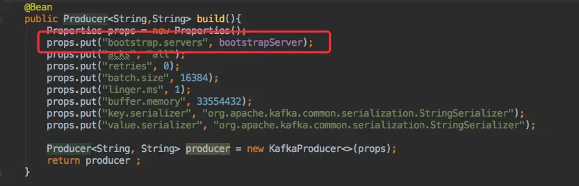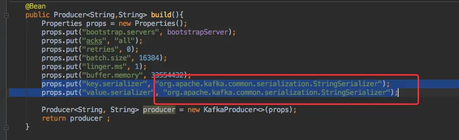 首先创建一个 org.apache.kafka.clients.producer.Producer 的 bean。