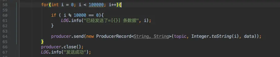 这里我给某一个 Topic 发送了 10W 条数据,运行程序消息正常发送。