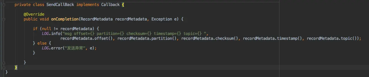 Callback 是一个回调接口,在消息发送完成之后可以回调我们自定义的实现。