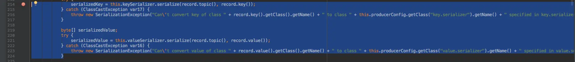 在调用 send() 函数后其实第一步就是序列化,毕竟我们的消息需要通过网络才能发送到 Kafka。