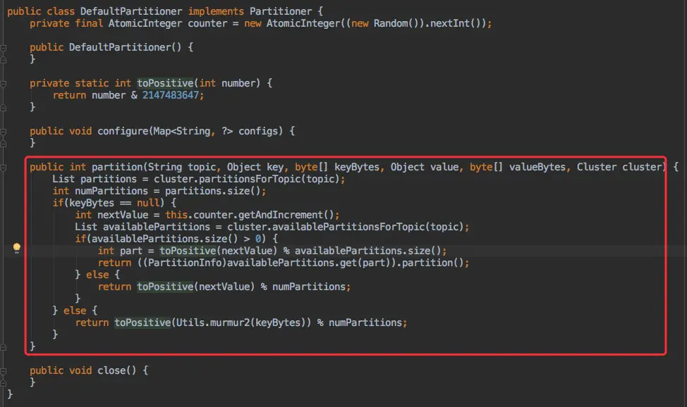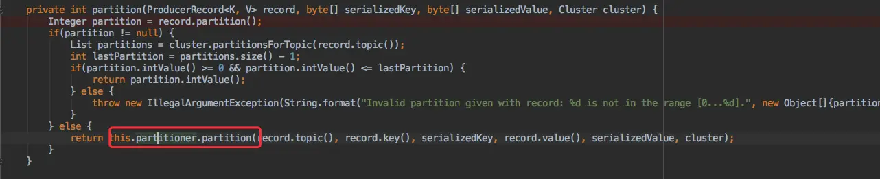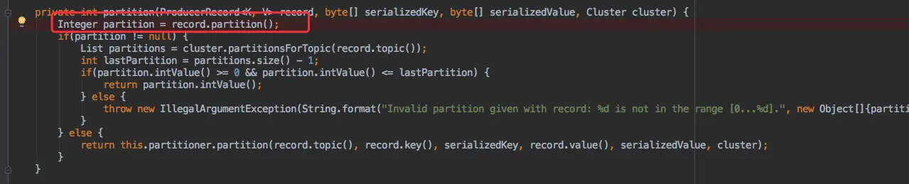 而我们也只需要自定义一个类实现 org.apache.kafka.clients.producer.Partitioner 接口,同时在创建 KafkaProducer 实例时配置 partitioner.class 参数。