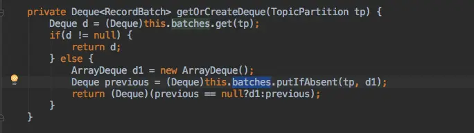该函数中会调用一个 getOrCreateDeque() 写入到一个内部缓存中 batches。