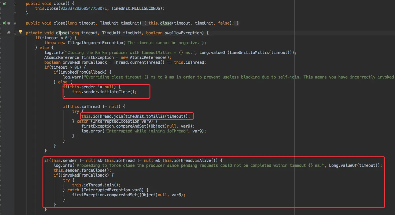 最后则是 Producer 的关闭,Producer 在使用过程中消耗了不少资源(线程、内存、网络等)因此需要显式的关闭从而回收这些资源。